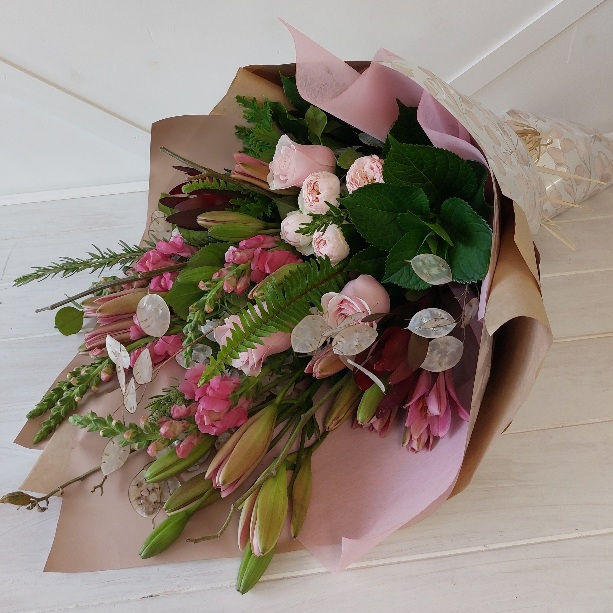 A bouquet is a selection of flowers and foliage, hand-tied and gift-wrapped ready to go in a vase.